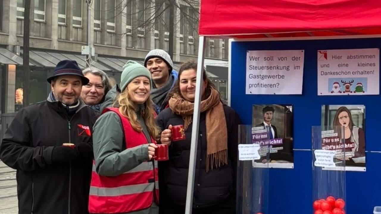 In diesem Zeitraum finden öffentlichkeitswirksame Aktionen im Umfeld stark frequentierter Weihnachtsmärkte statt, begleitet von gezielten Betriebsbesuchen in Hotels, Restaurants und Cafés. Dabei werden Gewerkschafter*innen und ehrenamtlich Aktive gezielt Beschäftigte im Hotel- und Gaststättengewerbe aufsuchen, um über die laufende Tarifrunde, das aktuelle Angebot des DEHOGAs und die Blockadehaltung der Arbeitgeberseite zu informieren.
