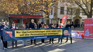 Stuttgart, 6. November 2025 - In der Stuttgarter Innenstadt findet am 06.11.25 eine Protestveranstaltung der Gewerkschaft Nahrung-Genuss-Gaststätten (NGG) statt.